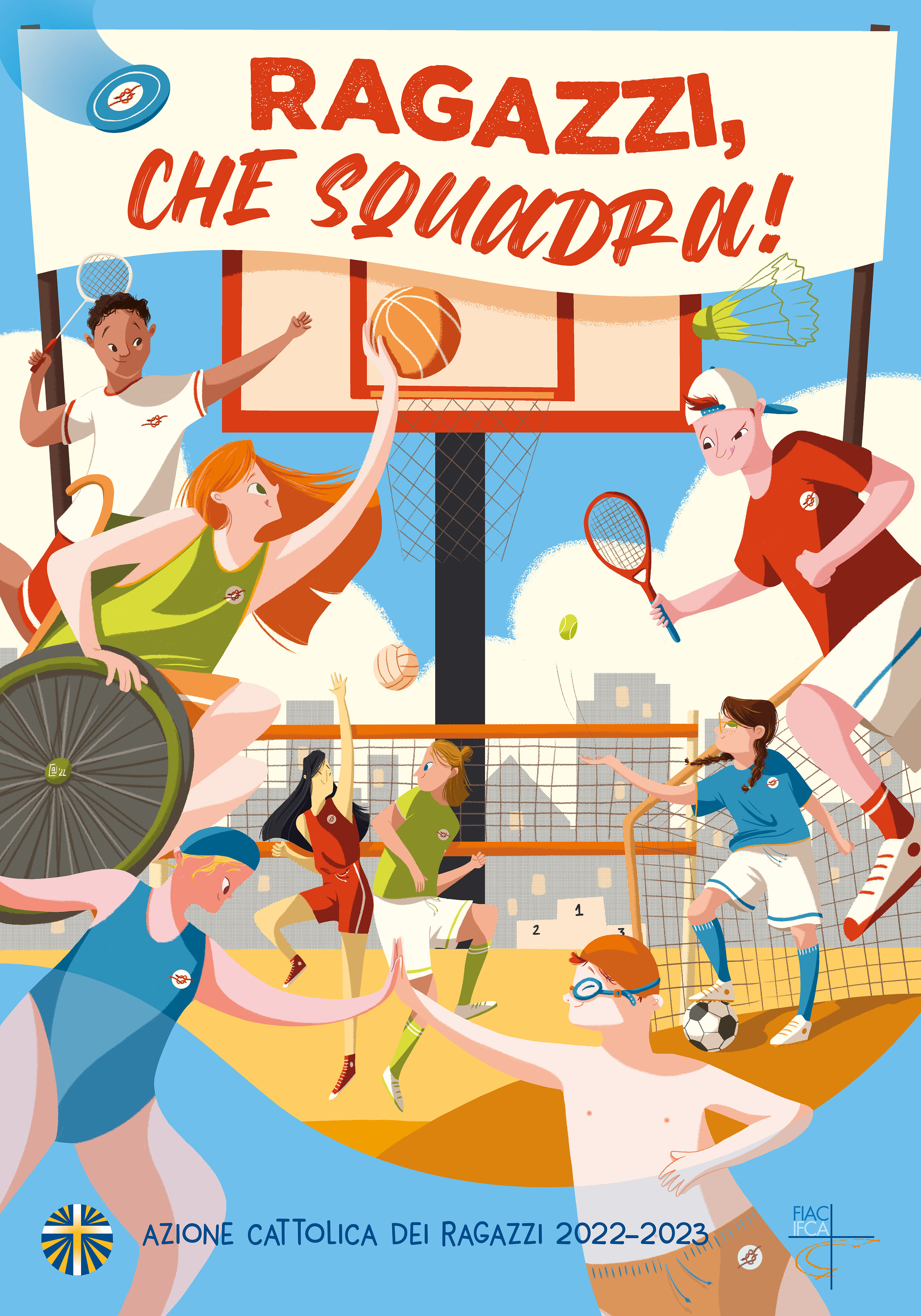 Nell’anno della compagnia in cui il cammino dell’ACR ci invita a riflettere sul mistero della Chiesa, dove ognuno è chiamato a scoprire un carisma particolare, l’ambientazione che aiuta i ragazzi in questo percorso è quella degli sport di squadra.